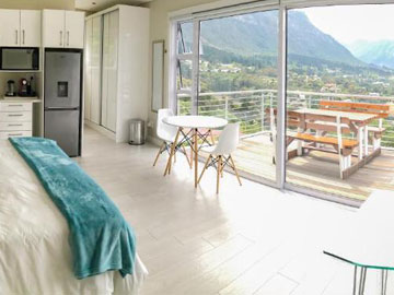 Bagan suite is a 1 bedroom suite (measuring approx. 55 square metres) with its own entrance, and spans out onto a balcony with sea, mountain and valley views. It sleeps two adults and features a spacious bedroom with king size bed, kitchen and separate bathroom with a large shower. Comfortably furnished, with an open plan lounge / dining area that slides open onto a balcony overlooking the sea, mountains and valley.